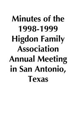 Minutes of the 1998-1999 Higdon Family Association Annual Meeting in San, Antonio
