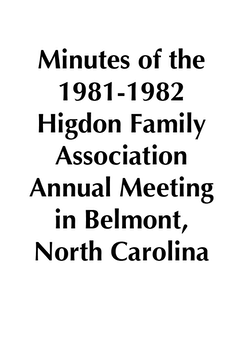 Minutes of the 1981-1982 Higdon Family Association Annual Meeting in Belmont, South Carolina